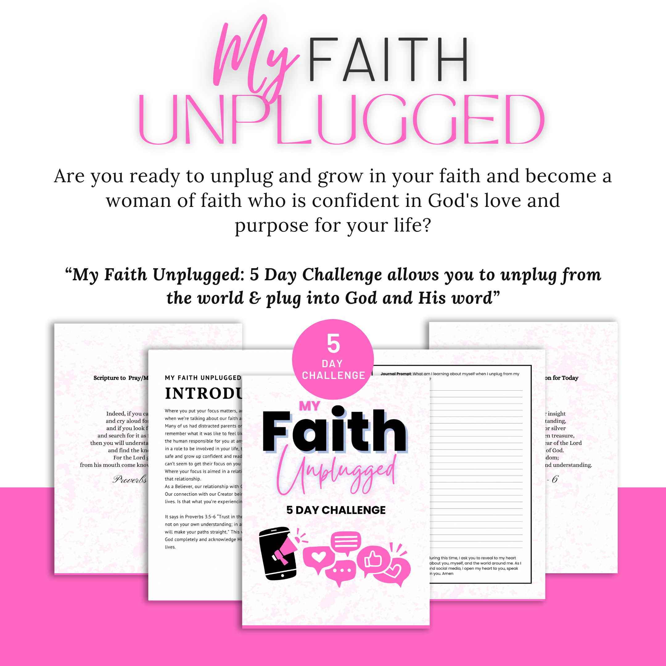 The My Faith Unplugged 5-Day Challenge is your invitation to take a step back, silence the distractions, and make room for God’s presence in your life.